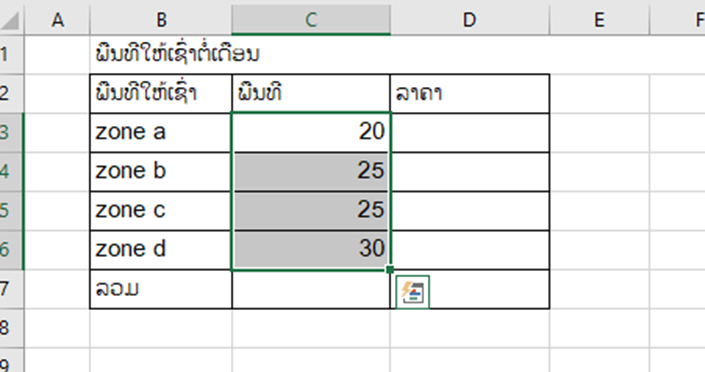 •ສ້າງຕາຕະລາງຂື້ນມາເລືອກເອົາຖັນທີເຮົາຈະໃສ່ໜ່ວຍ