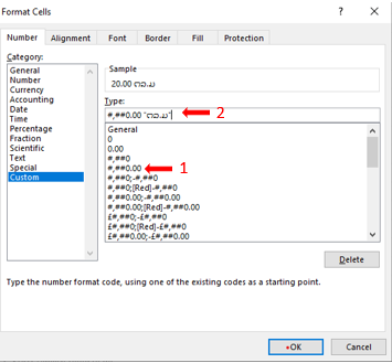 ເລືອກ Cutom ເລືອກ #,##0 ພີມ “ກີບ” ກົດ Ok