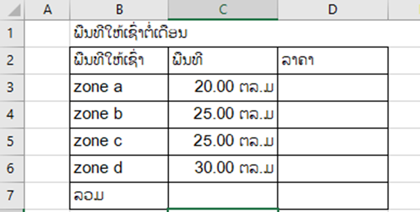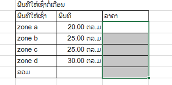 ເລືອກເອົາຖັນຫ້ອງລາຄາ ເລືອກ Cutom ເລືອກ #,##0 ພີມ “ກີບ” ກົດ Ok