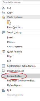 ຄິກຂວາໄປທີ່ Format cells…