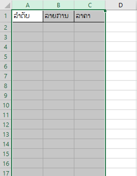 •ສ້າງລາຍການຂືນມາ ລາກເອົາຖັນທີຢາກສ້າງຕາຕະລາງ
