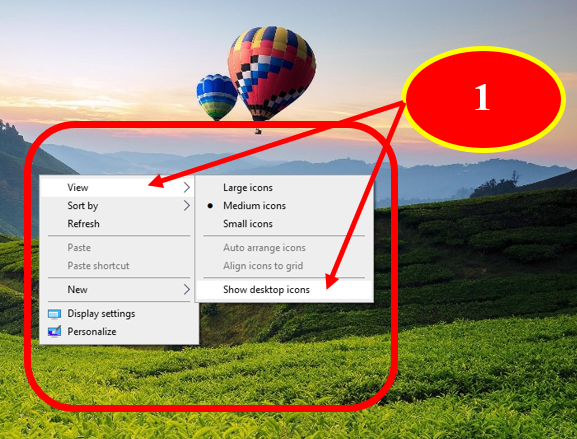 - ຄຼິກຂວາໃສ່ໜ້າຈໍເດດທ໋ອບ ແລ້ວເລືອກ View >> Show desktop icon