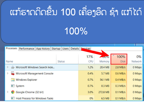 ແກ້ໄຂ Disk 100%, ເຄື່ອງຊ້າ.