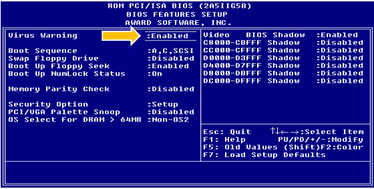 ສາເຫດ ເກີດຈາກການຕັ້ງຄ່າ Virus Warning ໃນ bios