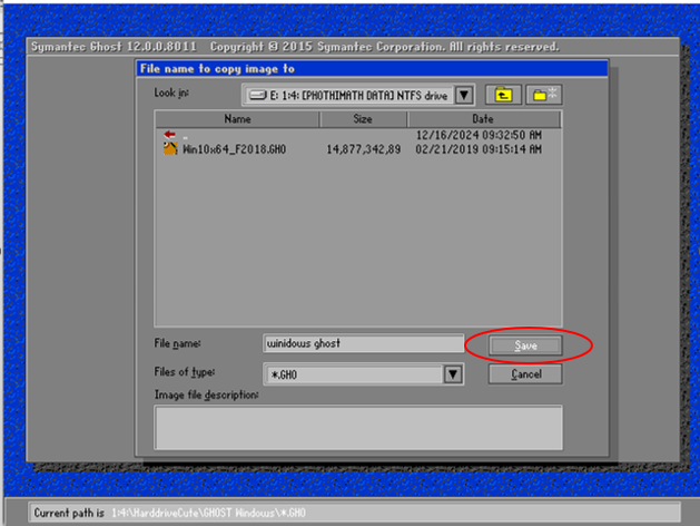 5. ຂັ້ນຕອນນີ້ແມ່ນໃຫ້ເຮົາເລືອກຊ່ອງທີ່ເຮົາຕ້ອງການເກັບ File windows ghost ໄວ້ ຈາກນັ້ນກໍ່ກົດ SAVE