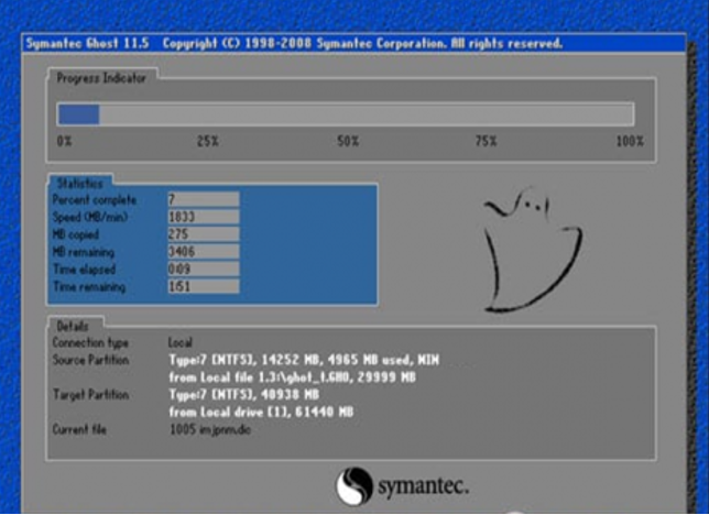 2. ຈາກນັ້ນມັນຈະປະກົດໜ້າຕ່າງ Symantec Ghost ຂື້ນມາໃຫ້ເຮົາດຳເນີນການຕໍ່