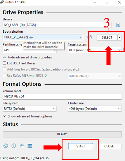 - ເປີດ ໂປຣແກມ Rufus 3.5.1497 ຂື້ນມາເພື່ອ Boot File USB ເພື່ອສ້າງເປັນຟາຍ ghost ໄວ້ໃນ USB