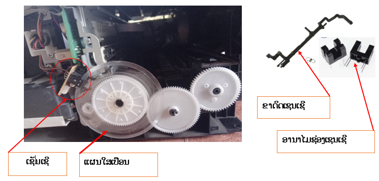 ສາເຫດ: ມີເຈ້ຍ, ສິ່ງຂອງຕ່າງໆຕົກໄປຕິດຄ້າງຢູ່ຊ່ອງການອ່ານລະບົບເຈ້ຍ, ຂາດິດເຈ້ຍລຸດ ແລະ ແຜນໃສເຊັນເຊີນ