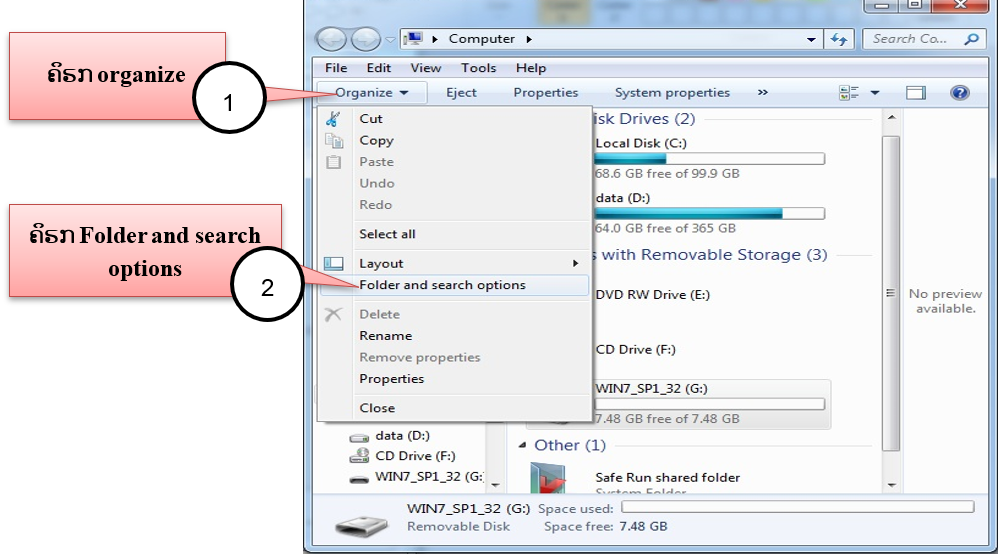 ຂັ້ນຕອນທຳອິດເຂົ້າໄປທີ່ computer ແລ້ວ ຄຣິກ organize