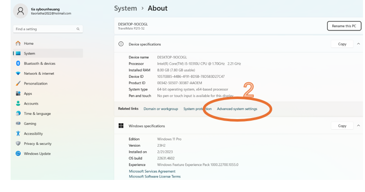 2. ຄຣິກໃສ່ແຖບ Advanced system settings