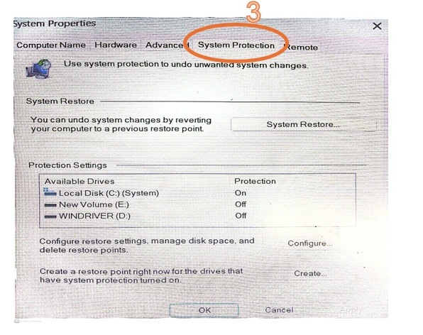 3 ເລືອກຫົວຂໍ້ System Protection