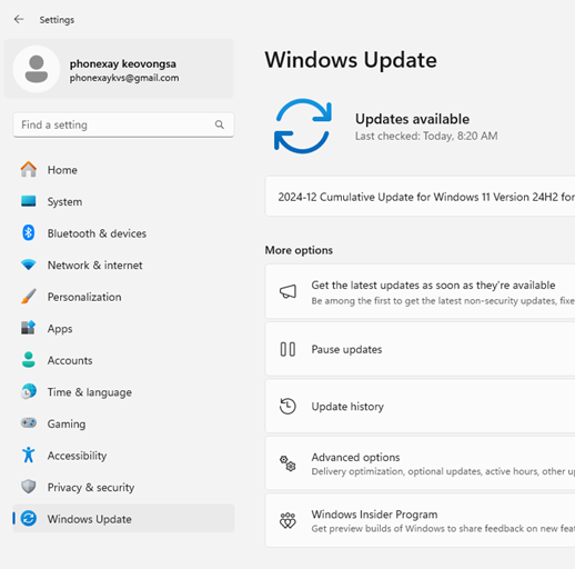 - ກົດເຂົ້າໄປທີ່ Start > Settings >Windows Update