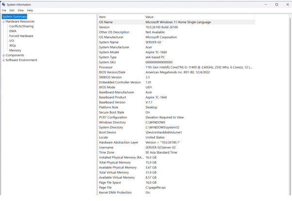 ຈະປາກົດໜ້າຕ່າງ System information ມີທີ່ມີຂໍ້ມູນອຸປະກອນຢ່າງຄົບຖ້ວນທັງ Software ແລະ Hardware