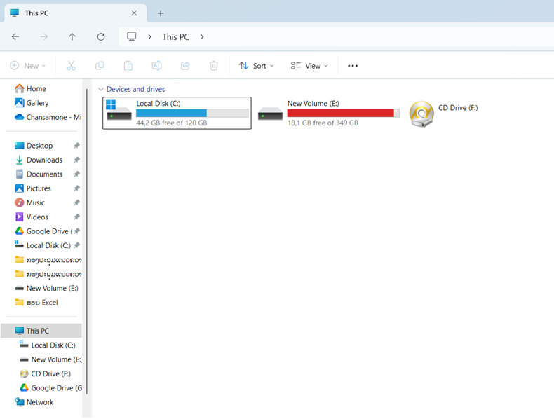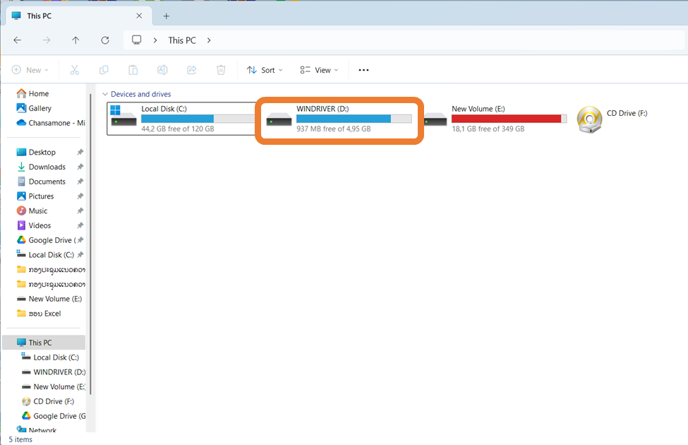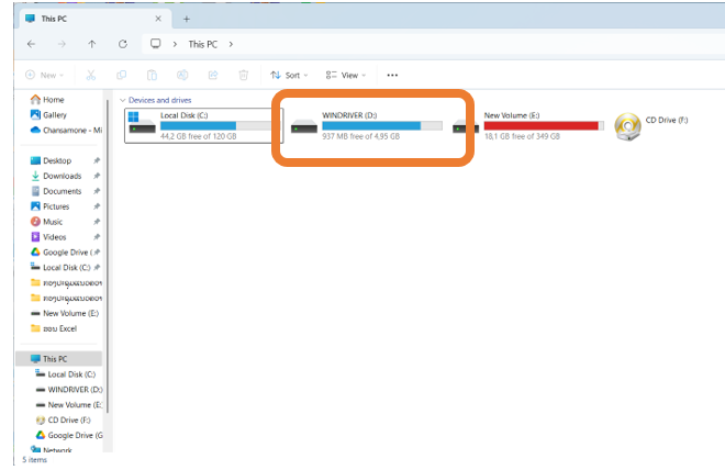 ຈາກນັ້ນ ເຂົ້າໄປເບິ່ງທີ່ This PC ຈະເຫັນວ່າມີ Drive D ສະແດງຂຶ້ນມາ