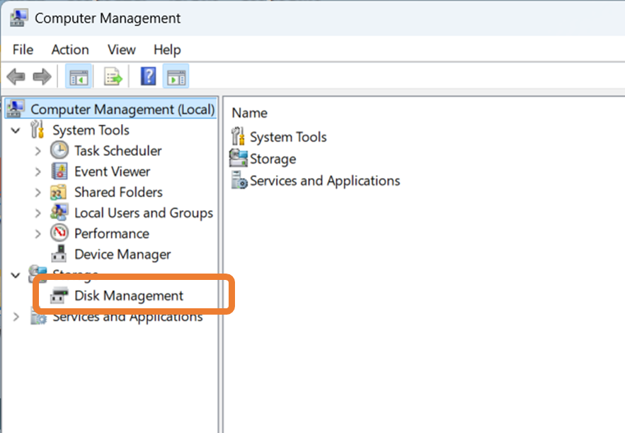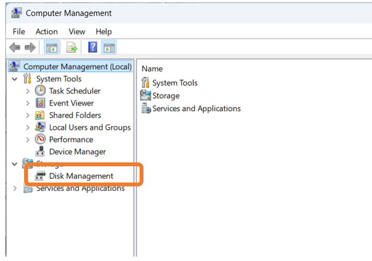 ຈາກນັ້ນເລືອກ Disk Management