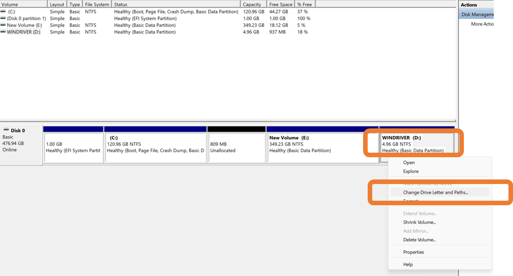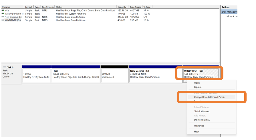 ຄຣິກຂວາທີ່ Driver D ແລ້ວ ເລືອກ Change Drive Letter and Paths