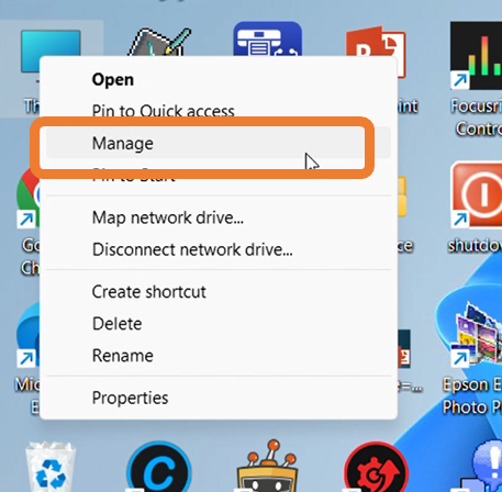 ຄຣິກຂວາທີ່ This PC ເລືອກ Manage