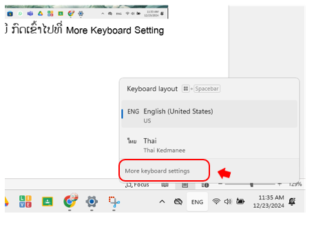 ສັງເກດເບິ່ງວ່າ ມີພາສາລາວບໍ, ຖ້າບໍ່ມີ ກົດເຂົ້າໄປທີ່ More Keyboard Setting