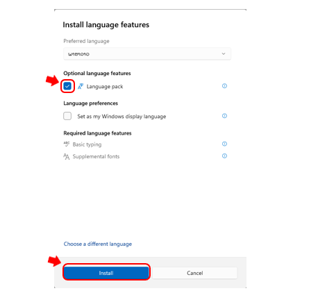 - ກົດເຄື່ອງໝາຍຖືກໃສ່ໜ້າ Language Pack ຈາກນັ້ນ ກົດ “ Install ” ແລ້ວລໍຖ້າ