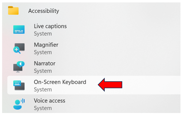 4. ແລ້ວຄລິກທີ່ On-Screen keyboard