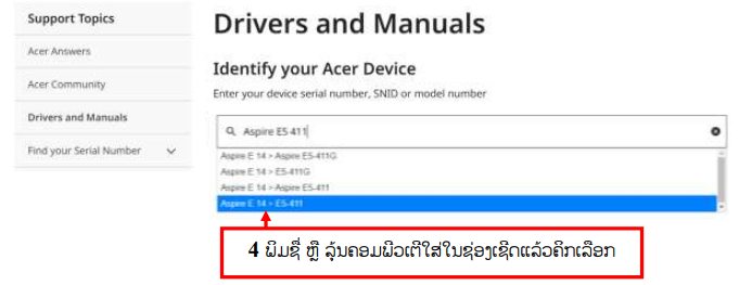 ເເກ້ໄຂບັນຫາ ໂນດບຸກ Touchpad Acer Aspire E5 – 411ໃຊ້ບໍ່ໄດ້ເວລາລົງ Windows 10