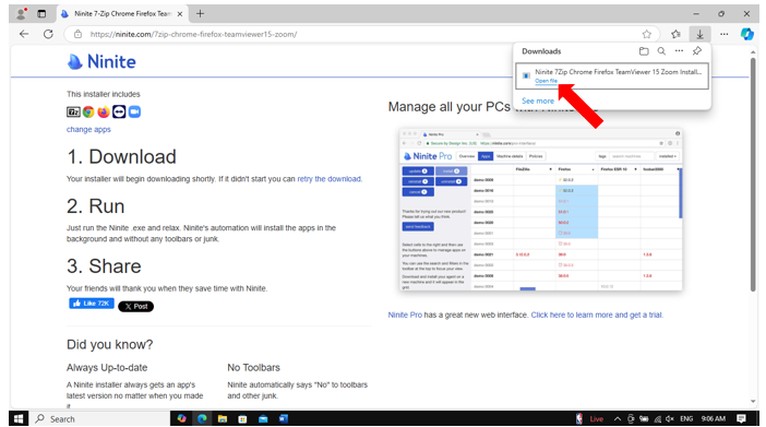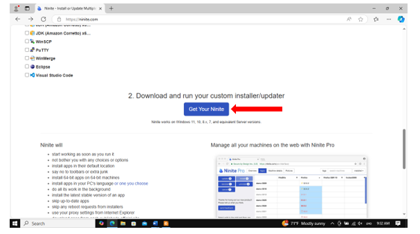 ເມື່ອເລືອກໂປຣແກຣມໄດ້ແລ້ວເລື່ອນເມົາສໄປທີ່ຫົວຂໍ້ Get Your Ninite ແລະ ຄິກໃສ່.