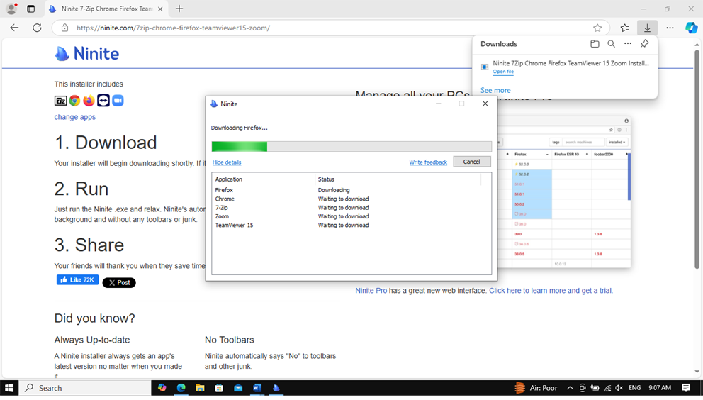 ການຕິດຕັ້ງໂປຣແກຣມເສີມຕ່າງໆແບບ Online ຜ່ານ Website Ninite