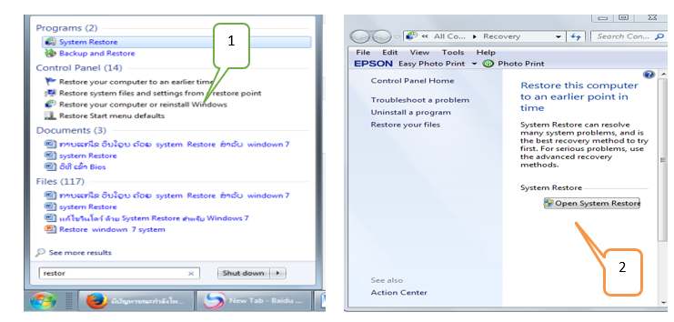System restore Window 7 ຢ່າງໃດກໍ່ຕາມ ຂໍແນະນຳວ່າຄວນກັບ File ເອກກະສານຕ່າງໄວ້ແຍກກັບລະບົບຫລື Wwindow ເພາະບາງຄັ້ງເຮົາອາດໄປເຮັດໃຫ້ລະບົບ window ເສຍຫາຍ ຫລືເພື່ອຄວາມສະດວກໃຫ້ window (OS ແລະ ອື່ນຢູ່ໂດດໆ ພຽງ Drive ດຽວ) ເພາະເມື່ອ OS ຫລື Computer ຂອງເຮົາມີບັນຫາກໍ່ສາມາດລົງ window ໃໝ່ໄດ້ໂດຍບໍ່ຕ້ອງ Format Drive ອື່ນ ນອກຈາກ Drive ຂອງ window 7