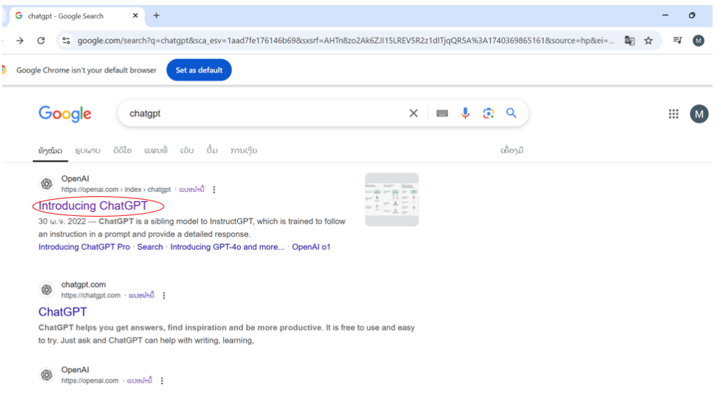 ໄປທີ່ google ແລ້ວພີມໃສ່ບ່ອນຄົ້ນຫາ ChatGPT