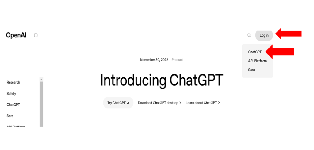 ກົດເອົາ Log in ເລືອກ Chatgpt