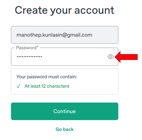 Pass word ລະບົບຈະຕັ້ງໃຫ້ແບບອັດຕະໂນມັດເຮົາສາມາດເບິ່ງ Pass word ໄດ້ໂດຍກົດໄປທີກາລູກຕາ ຈາກນັ້ນກົດ Continue