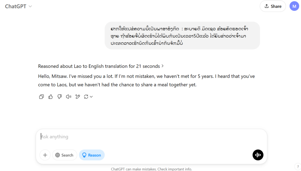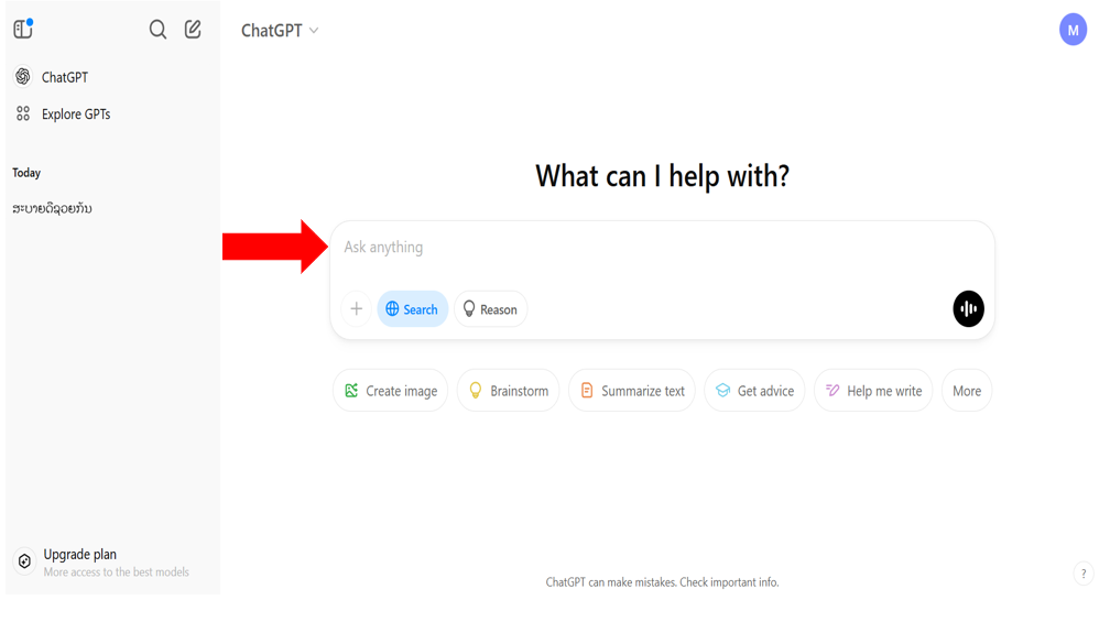 ສາມາດພິມ ຄຳຖາມໃສ່ບ່ອນ Ask anything ໄດ້ເລີຍ