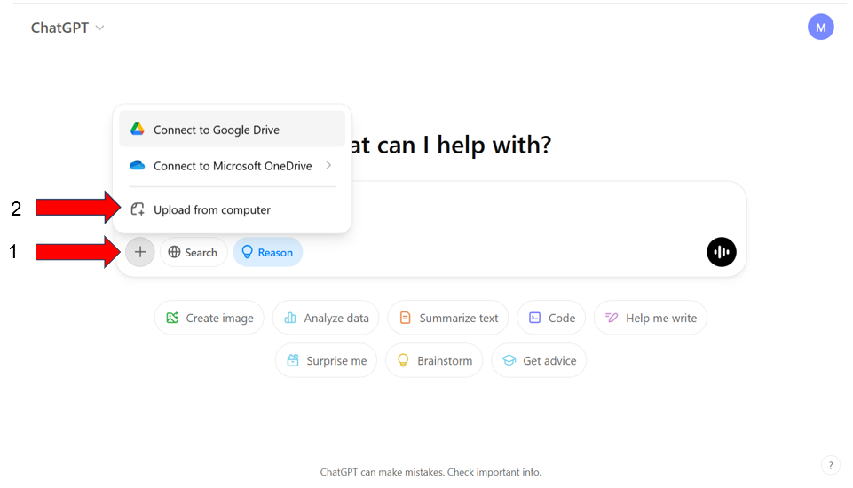 ຄ. ໃຊ້ Chatgpt ຄຳນວນໂຈດເລກ ໂດຍທີ່ເຮົາສາມາດຖ່າຍຮູ້ບເອົາໂຈດເລກທາງນອກມາໃສ່ໄດ້ ຄິກໃສ່ກາບວກ ແລ້ວເລືອກ Upload from computer