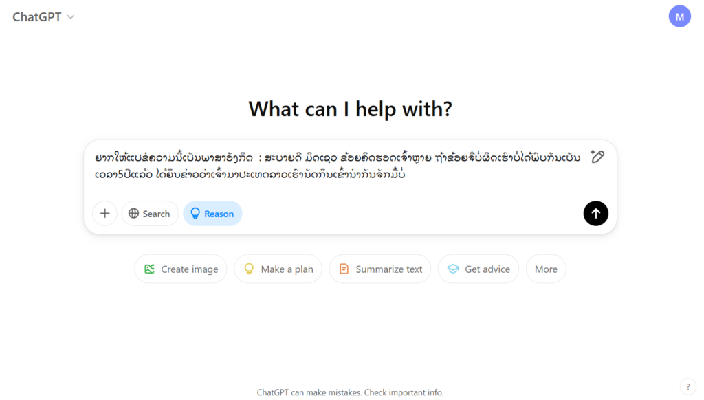 ງ. ໃຊ້ Chatgpt ແປພາສາ ແລະ ຂຽນ E mail ໂດຍການຂຽນລົງໄປວ່າ ຢາກໃຫ້ແປຂໍຄວາມນີ້ເປັນພາສາອັງກິດ ຕາມດ້ວຍຂໍ້ຄວາມທີເຮົາຕ້ອງການ