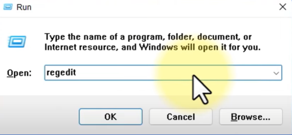 1. ເຂົ້າໄປທີ່ Run ແລ້ວພິມ Regedit > Ok