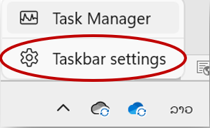 1. ກົດເມົ້າຂວາທີ່ Taskbar (ກົດໃສ່ພື້ນທີ່ຫວ່າງເບື້ອງລຸ່ມສຸດຂອງໜ້າຈໍຄອມພິວເຕີ) ແລ້ວເລືອກ Taskbar settings