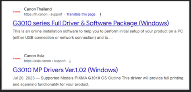 - ໃນຊ່ອງຄົ້ນຫາພິມຄຳວ່າ canon g3010 driver