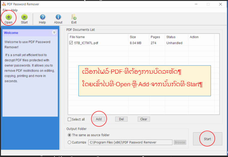 ໃນບາງຄັ້ງເມື່ອດາວໂຫຼດ ຫຼື ນໍາເອົາໄຟລ໌ PDF ມາຈາກແຫຼ່ງຕ່າງໆ ສັງເກດເຫັນວ່າສາມາດເປີດອ່ານໄດ້ພຽງຢ່າງດຽວເທົ່ານັ້ນ ເຊິ່ງບໍ່ສາມາດປຣິນ ຫຼື ແກ້ໄຂຂໍ້ມູນໄດ້ ສະນັ້ນ ຈິ່ງແນະນໍາບາງວິທີແກ້ໄຂ ທີ່ສາມາດປົດລະຫັດໄຟລ໌ PDF ອອກໄດ້ ໂດຍການນໍາໃຊ້ໂປຣແກຣມ PDF Password Remover v5.0+Key