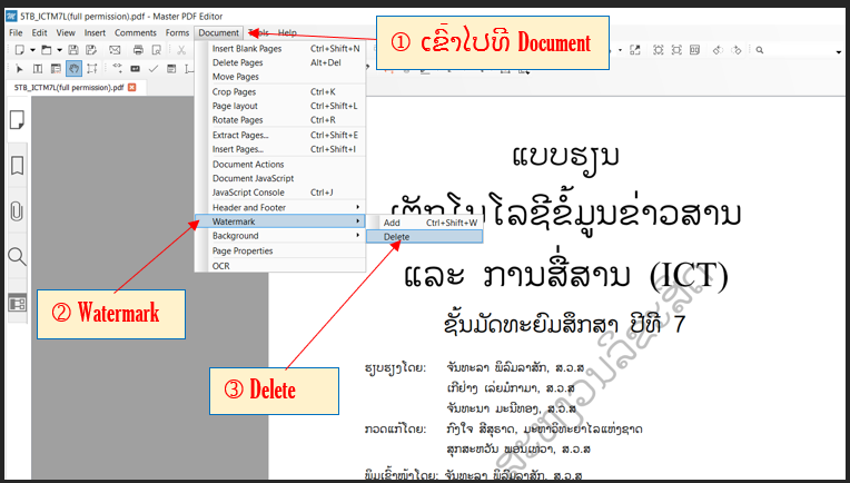 ຈາກນັ້ນຈະໄດ້ໄຟລ໌ PDF ທີ່ບໍ່ມີ ສະຫງວນລິຂະສິດ ດັ່ງນີ້: