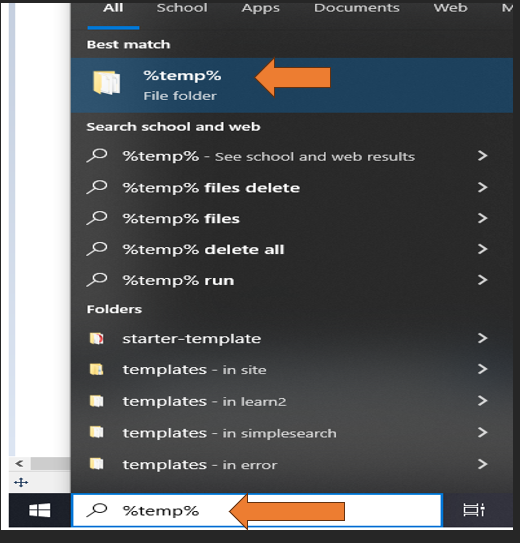 1. ໃຫ້ໄປທີ່ Start > ເລືອກຊ່ອງຄົ້ນຫາ > ພິມ > %temp% ແລະກົດ Enter temp.