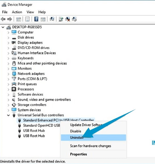 ໃຫ້ເຮົາກົດຖອນການຕິດຕັ້ງ Standard enhanced PCI to USb Host Controller