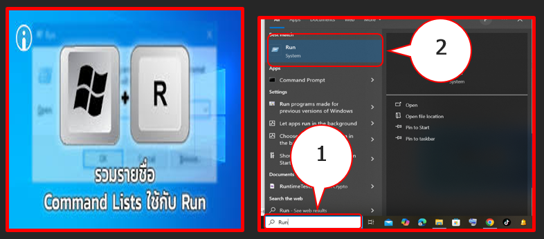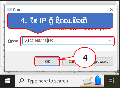 ພິມຄຳວ່າ Run ແລ້ວ enter