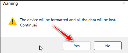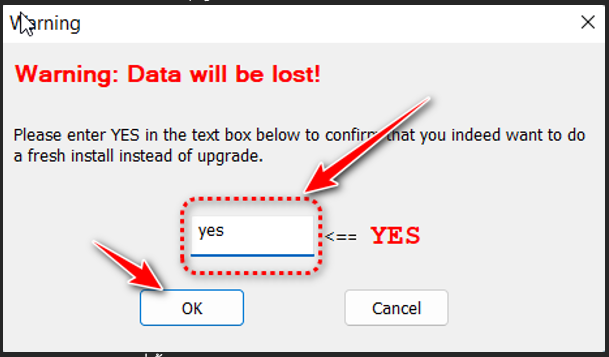 – ພິມ YES ໃສ່ໃນຊ່ອງແລ້ວ ກົດ OK